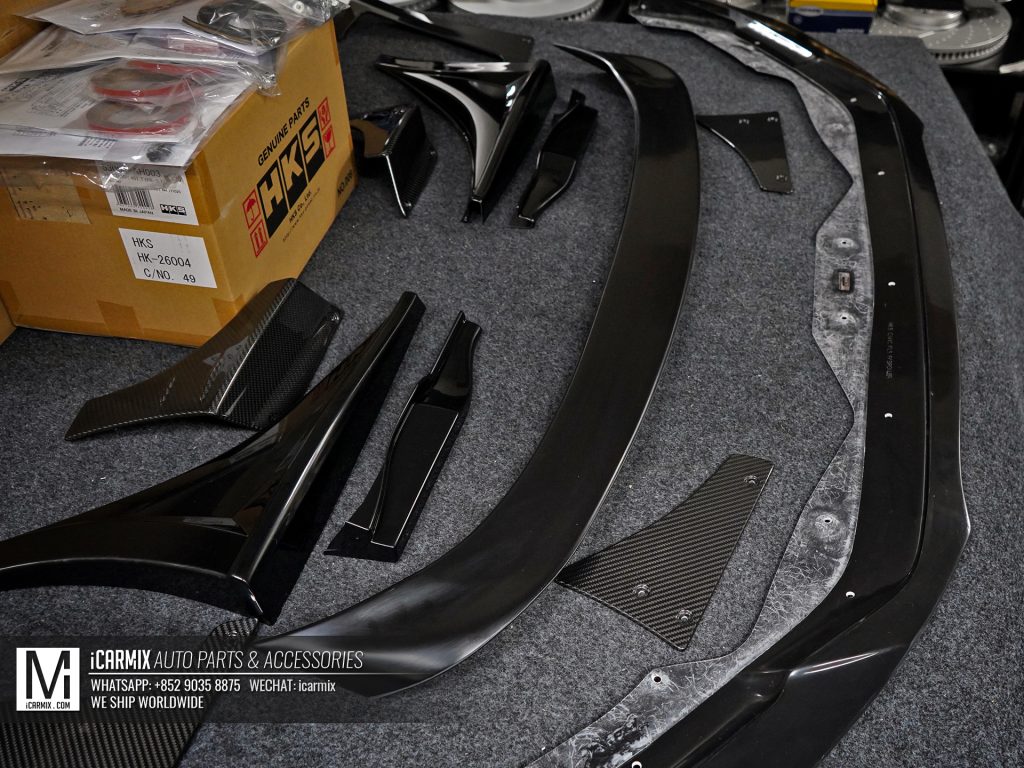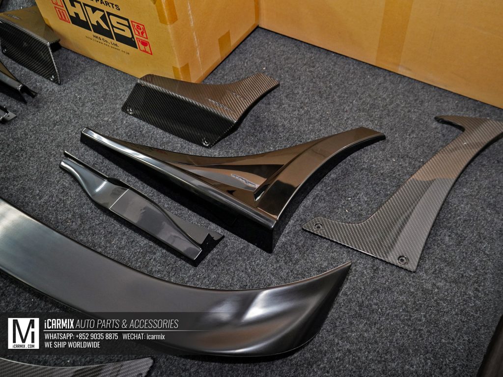 ▲根據HKS官方的設計,這套擾流組件會以車身顏色配合碳纖維的Two-Tone組合呈現,因此部分如頭唇、側裙組件、尾翼等等都需要進行焗油處理。
