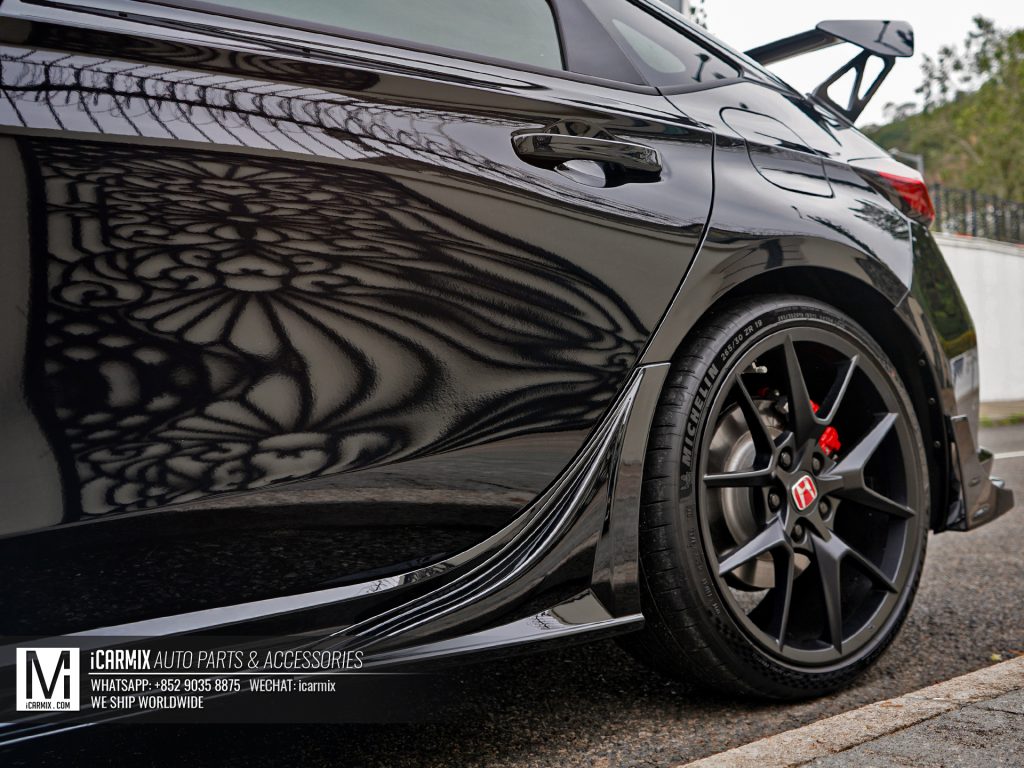 ▲車尾方面,HKS就為Type-R FL5設計了一對碳纖維尾包角組件以及尾翼。